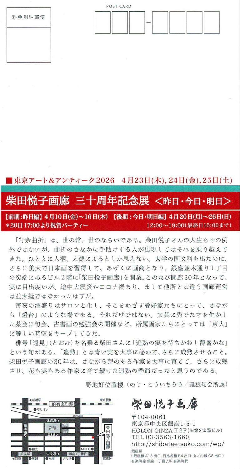 2026.04.05講師 展覧会参加のお知らせ「柴田悦子画廊 三十周年記念展<昨日・今日・明日>」